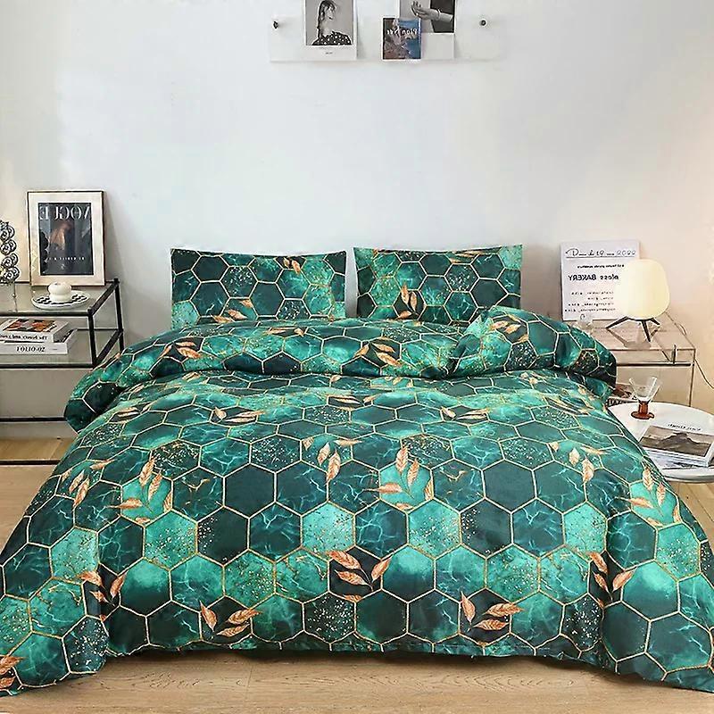 1-Honeycomb Duvet Cover Twin Queen Size Modern Marble Bedding Set for Boys Girls Geometrical Green Gold Reversible Comforter Cover