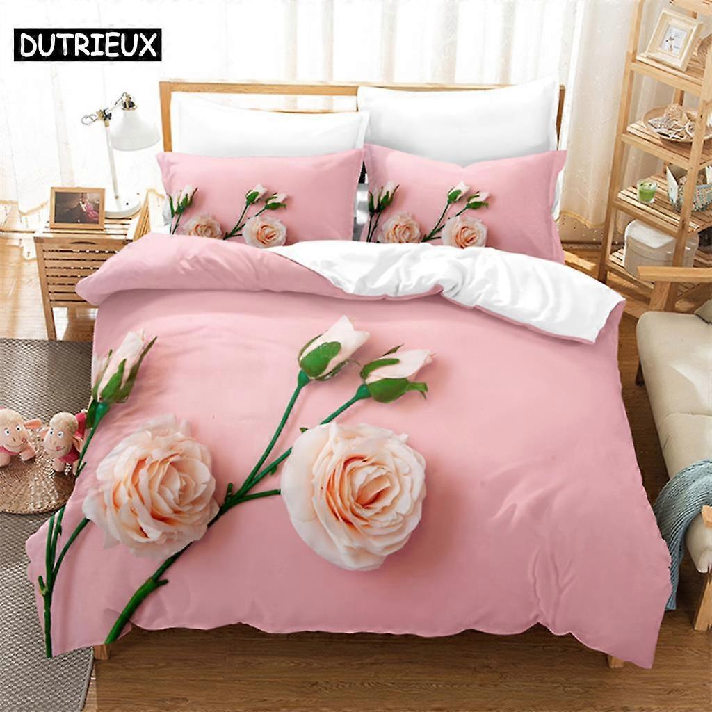 3-3D Digital - Printed Bright Roses - Themed Queen - Sized Duvet Cover Set with Fashionable Design for Bed Linen
