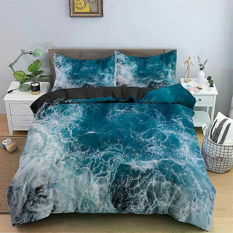 9-3D Ocean Waves Bedding Set Queen Size Soft Summer Sea Beach Duvet Cover Set Hawaiian Tropical Print Comforter Cover Pillowcases