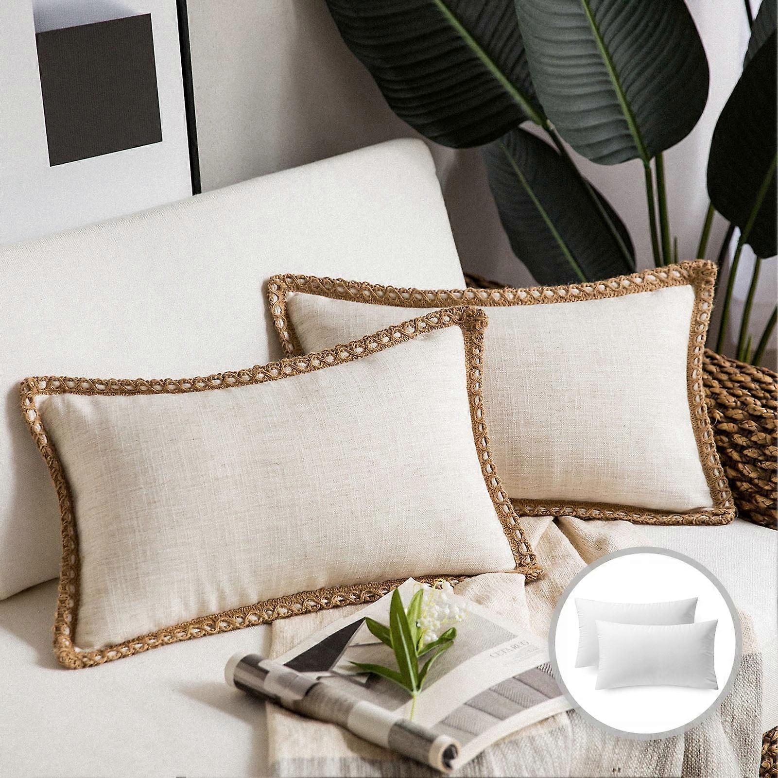 Phantoscope Farmhouse Burlap Linen Tailored Edge Series Decorative Throw Pillow, 12" X 20", Off White, 2 Pack