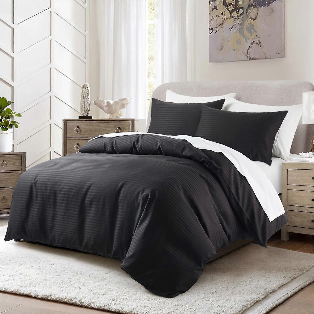 1-Black Satin Duvet Cover Super Soft Luxury Silky Stripes Reversible Bedding Set 2/3 Piece Twin Queen Comforter Cover with Zipper