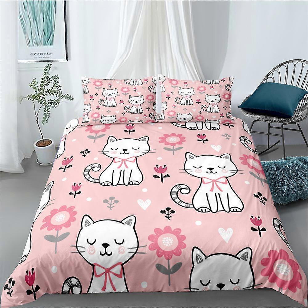 16-Cartoon Cat Duvet Cover - For Girls, with Kitten Pattern, Cartoon Animal Theme