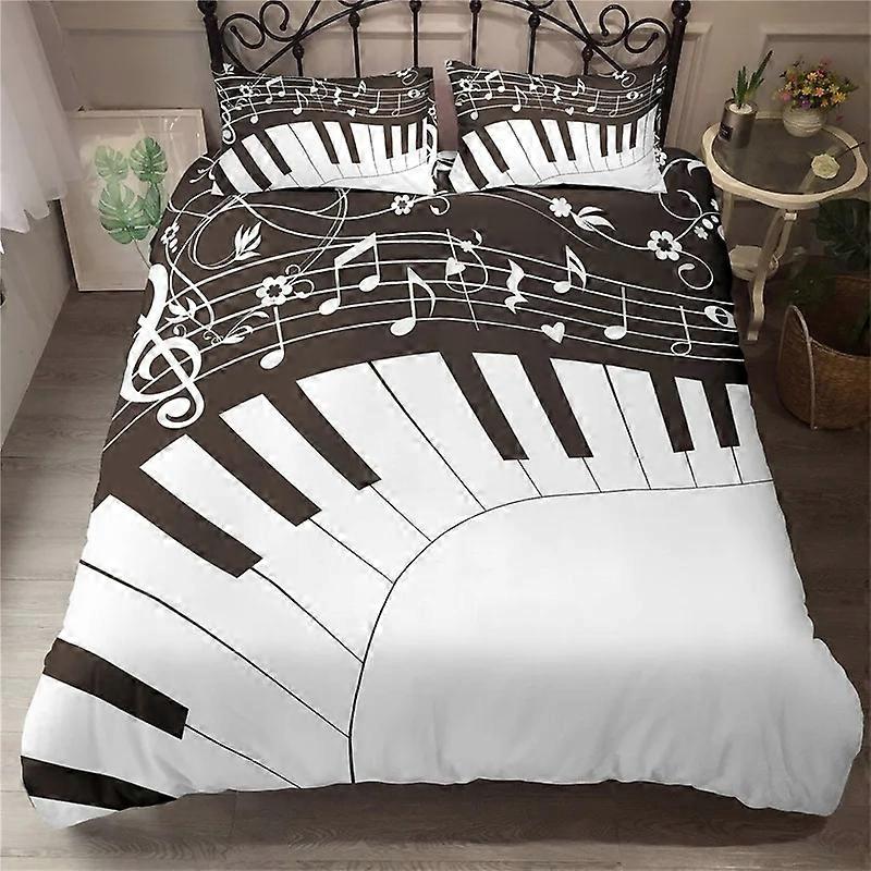 15-Piano Keyboard Duvet Cover Note Clef Staff Music Theme Bedding Set Microfiber Melody Music Geometric Quilt Cover Twin King Size