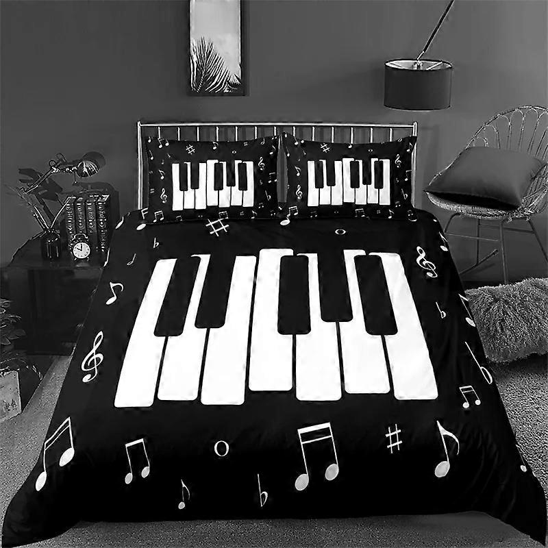 8-Piano Keyboard Duvet Cover Note Clef Staff Music Theme Bedding Set Microfiber Melody Music Geometric Quilt Cover Twin King Size