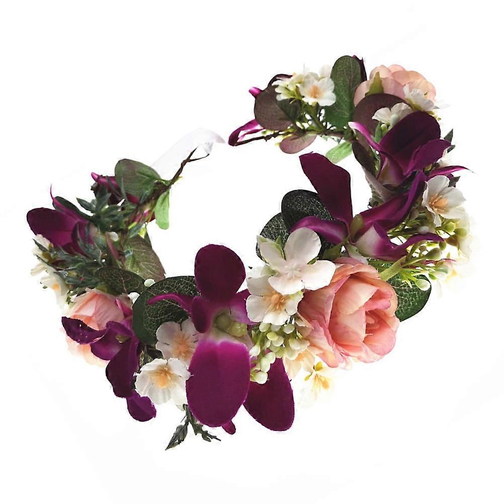 Bride Tiara Headpieces Wedding Artificial Flower Wreath Garland Bridal Hair Ribbons Girls Women
