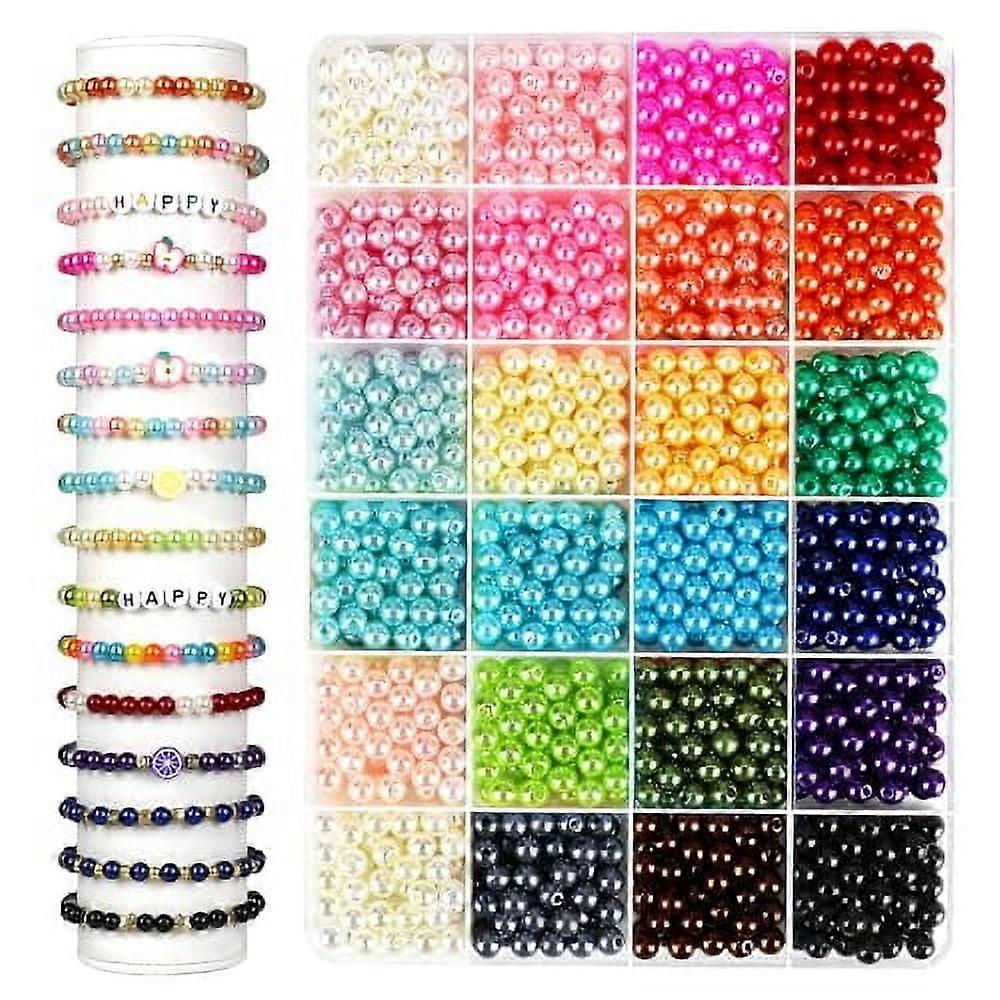 1200 Pcs Pearl Beads for Bracelet Making, 24 Colors 6mm Round Pearl Beads