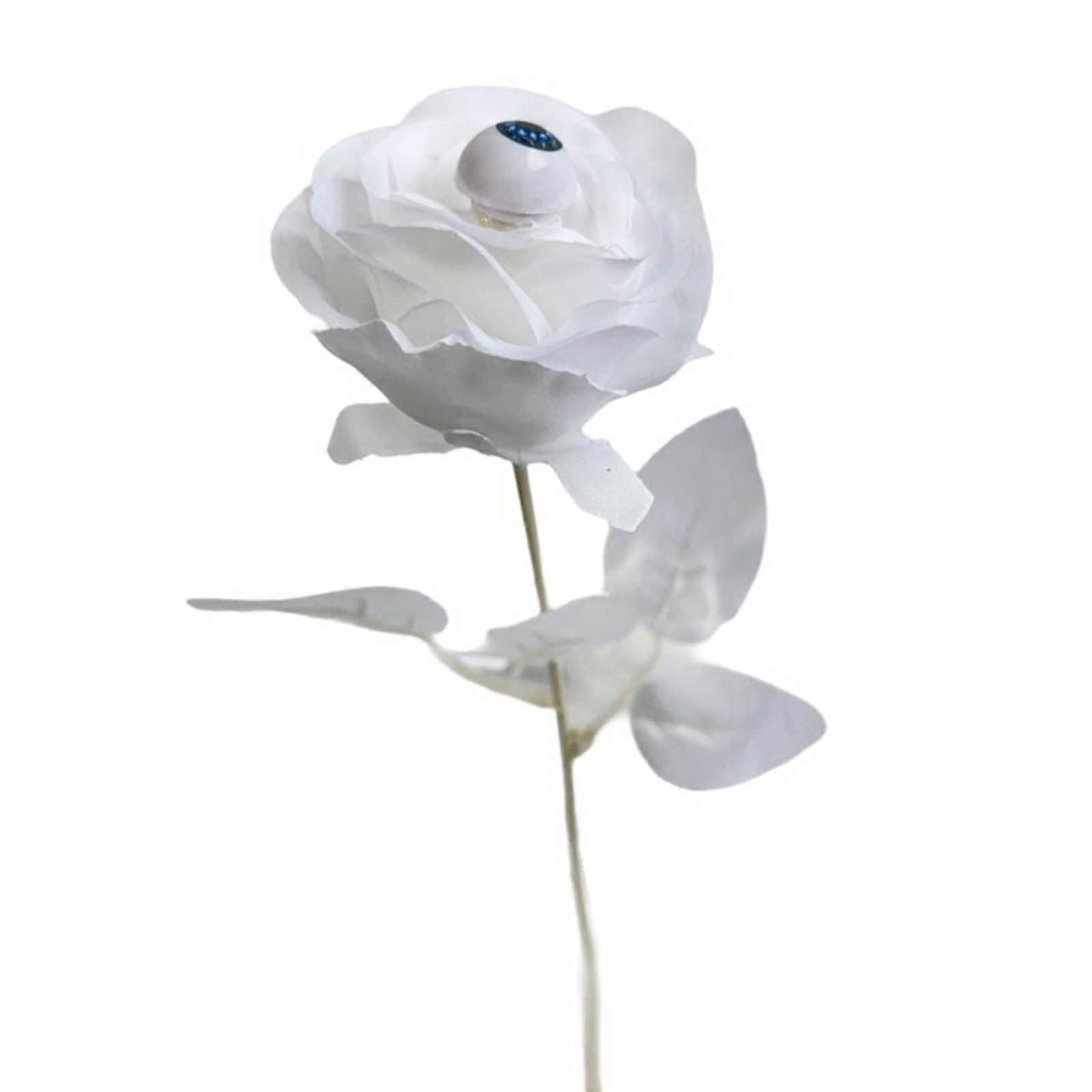 Halloween Artificial Roses with Eyeballs, Faux Flowers with Eyes Decor, Gothic Rose Bushes for Party, Home, Indoor/Outdoor, White