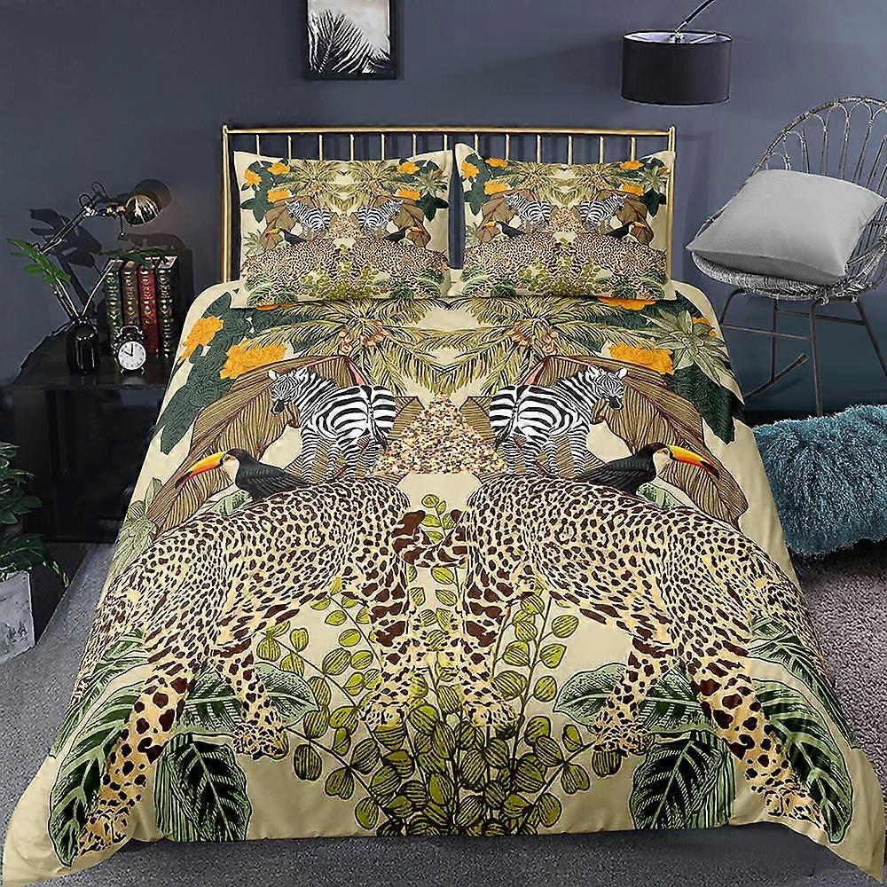 19-Jungle Animal Duvet Cover King Queen Tropical Plants Palm Leaves Bedding Set Kids Tiger Wildlife 2/3pcs Quilt Cover