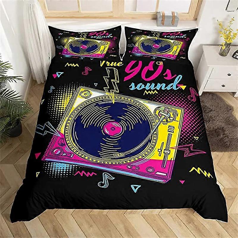4-80s 90s Comforter Cover Full Vintage Cassette Tape Vinyl Record Memphis Bedding Set Hippie Music Duvet Cover Geometric Bed Set