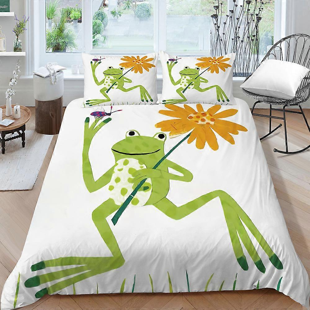 16-Animal Frogs Duvet Cover Set King Queen Size Green Lovely Cartoon Frog Bedding Set Kids Toad 2/3pcs Comforter Cover