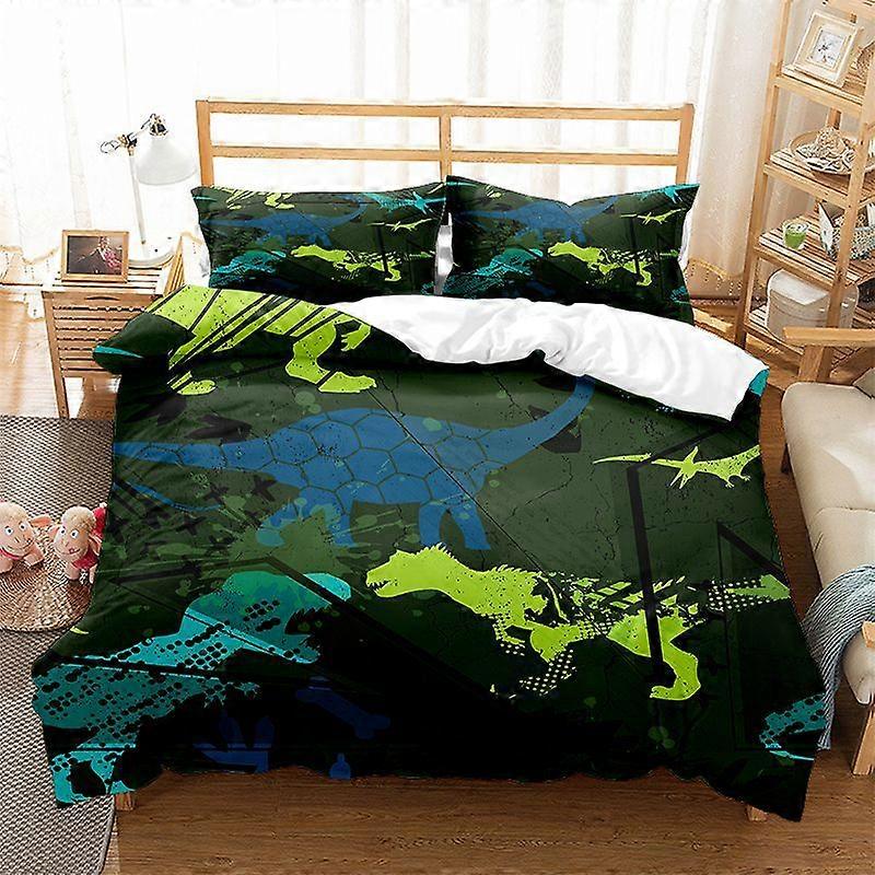 16-Dinosaur Duvet Cover Set Kids Bedding Set Full/Queen Size 3D Cartoon Animal Duvet Cover For Boys Girl Children Color Quilt Cover