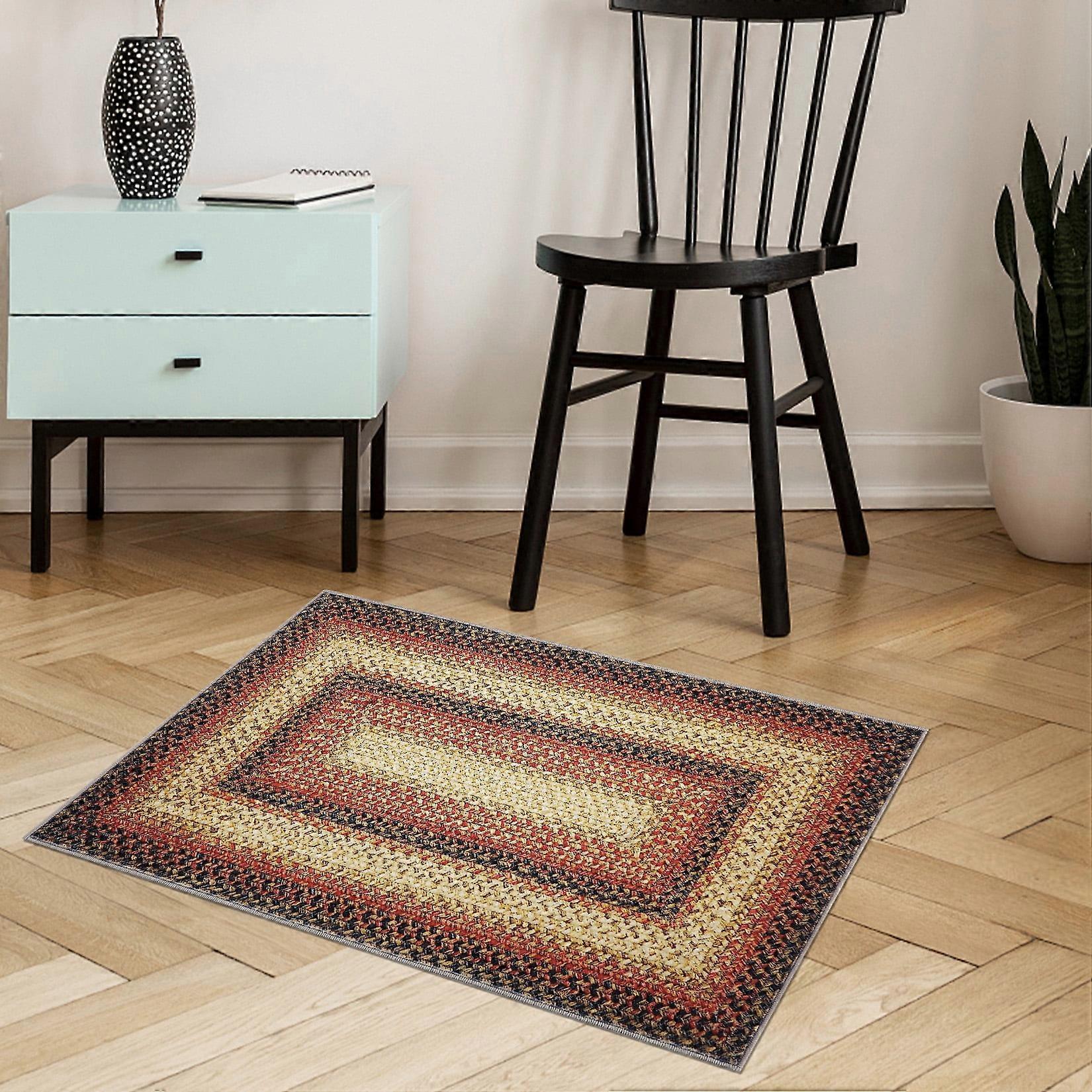 WhizMax 2x3 Small Entryway Rug Braided Printed Doormat Washable Boho Door Mat Farmhouse Rustic Geometric Rug for Laundry Kitchen, Red