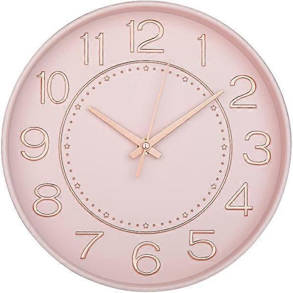 10 inch Small Wall Clock Battery Operated, Silent No Ticking, Modern Quartz Clock for Living Room Bedroom Kitchen Office, compatible with pink & rose