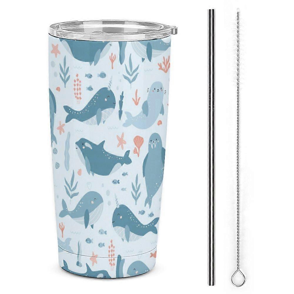 Walrus Animal Ocean Pattern Stainless Steel Tumbler with Lid 20 Oz Travel Mug Portable Thermal Cup