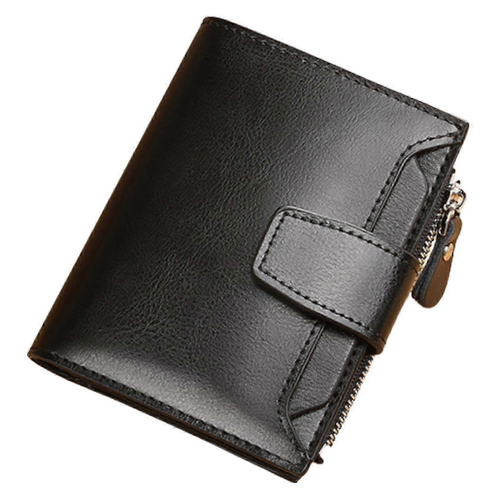 Women's multi-card slot mini wallet, smooth zipper, soft PU leather business wallet, suitable for women's business, office and travel, Black