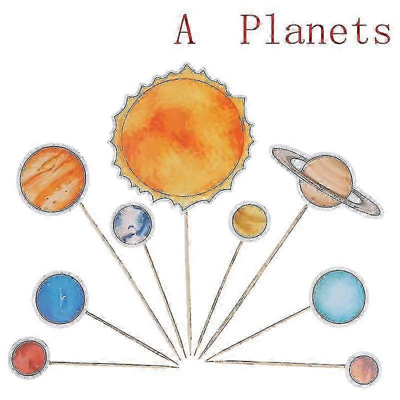 1 set of outer space-themed birthday party decoration paper cake toppers