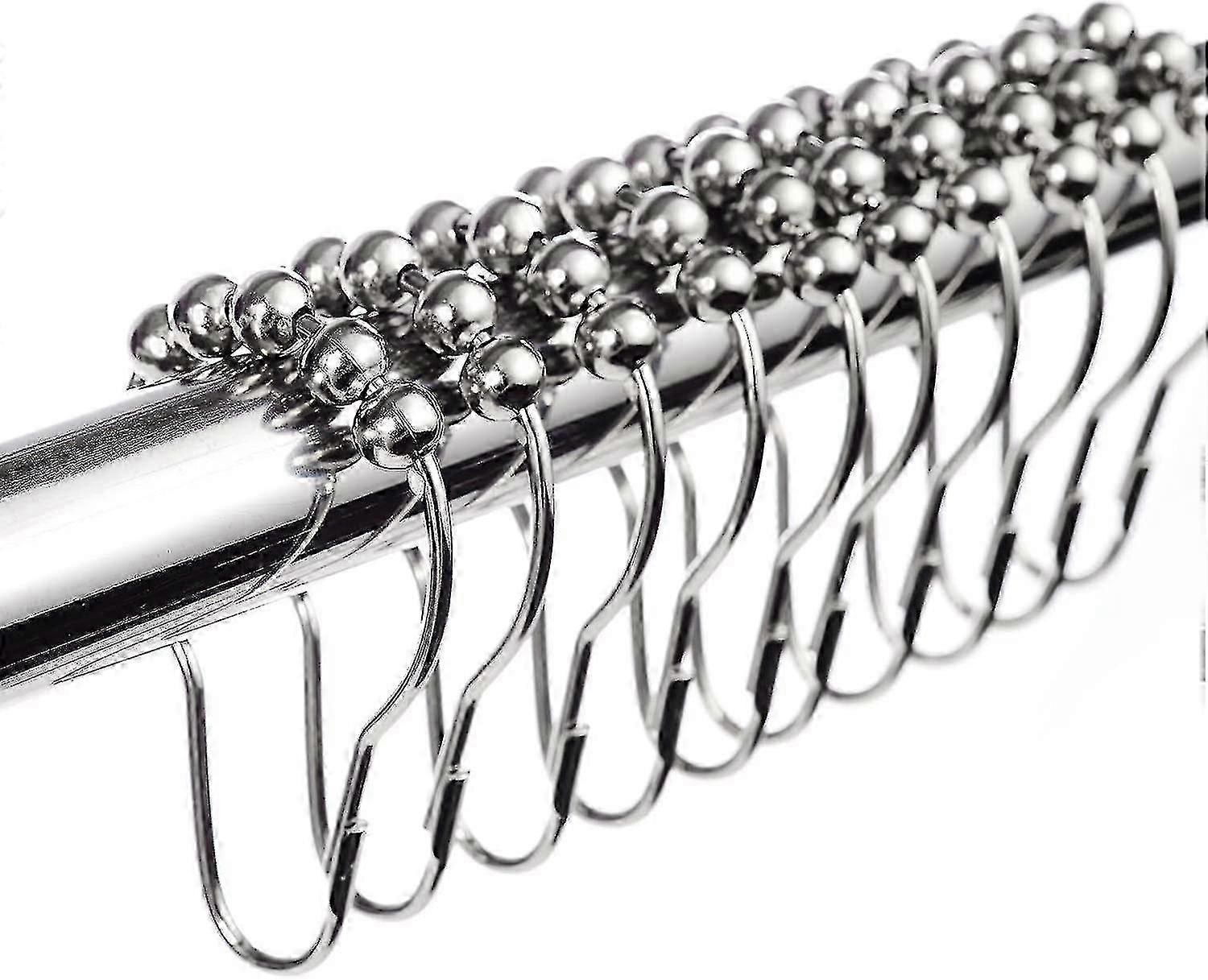 12-pack stainless steel shower curtain rings with sliding system, 12 single hooks, 69x39 mm