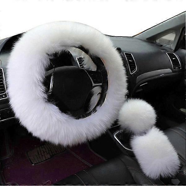 3-pack Faux Wool Steering Wheel, Gear Shift and Handbrake Covers Car Decor White
