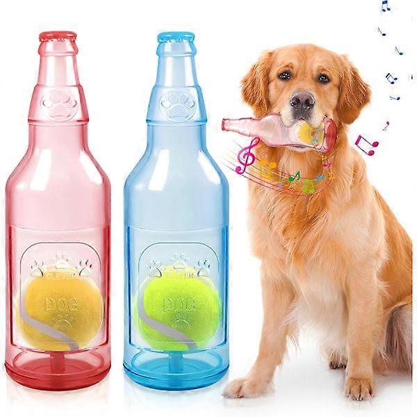 2 PCS Indestructible Squeaky Chew Toys for Dogs with Tennis Ball, Durable Puppy Toys for Bored Dogs for Play & Training, for Energetic H Blue Red