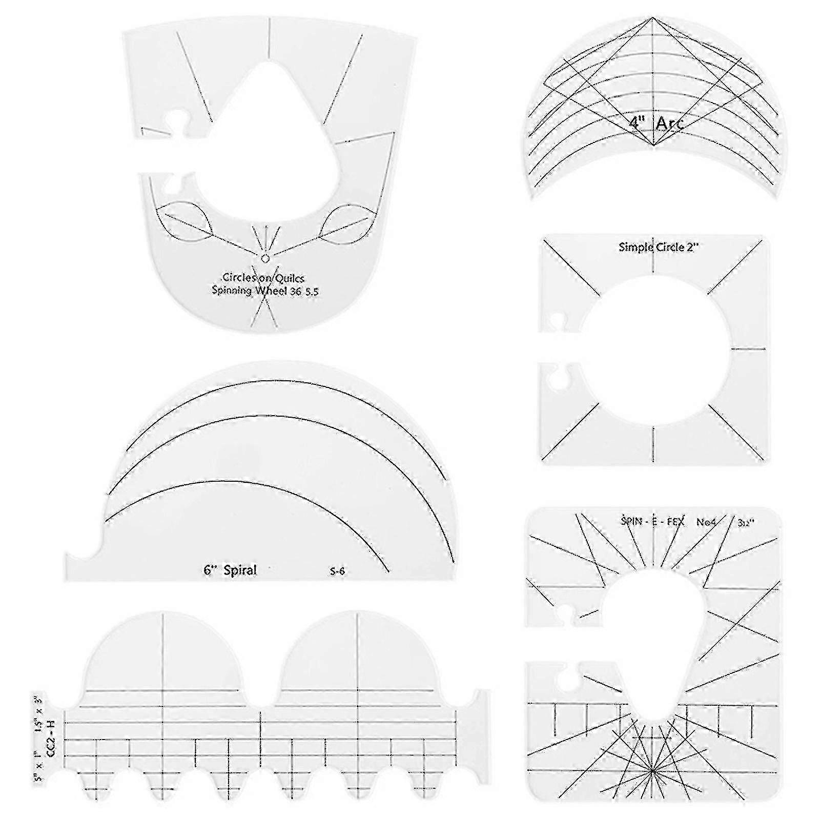 Multifunctional irregular-shaped sewing patch ruler, plastic ruler, sewing ruler, patchwork tool (1 set (6 pieces))