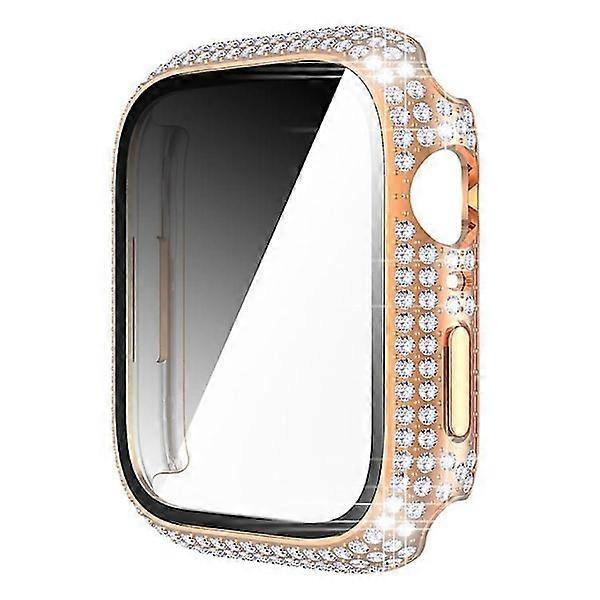 Case compatible with Apple Watch 45mm 41mm 40mm 44mm, Diamond Screen Protector Tempered Glass for iWatch Series 3 4 5 6 7 8 SE, Rose Gold