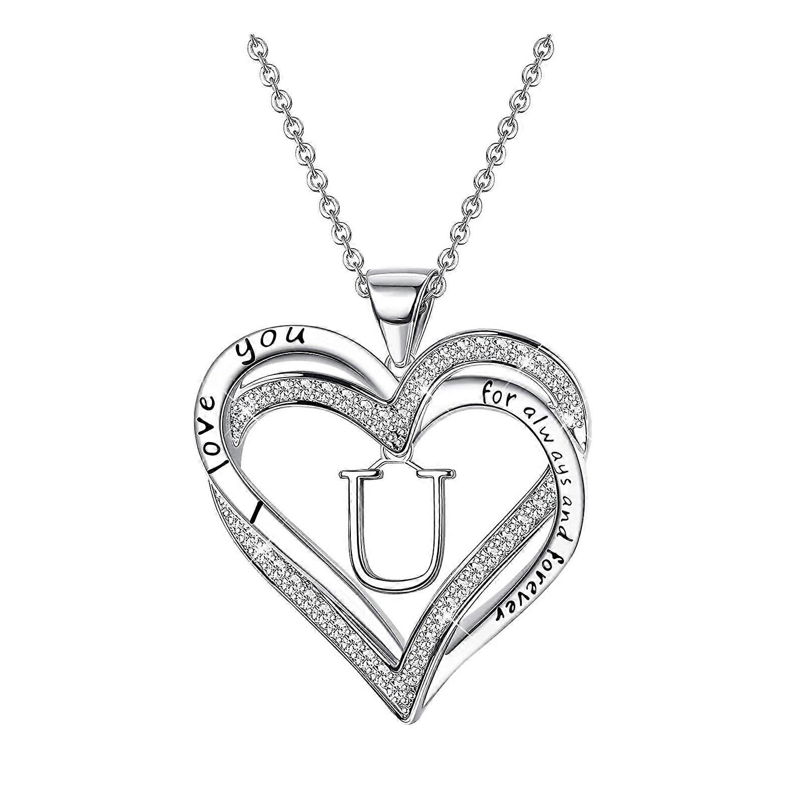 Pgeraug gifts for women Fashion Heart Letter Necklace 26 Letters Love Clavicle Neck Chain Letter Necklace U