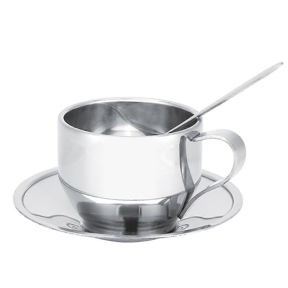 Coffee Cup-Stainless Steel Insulated Coffee Cup Double Wall Tea Milk Mug with Saucer Spoon Set Tableware