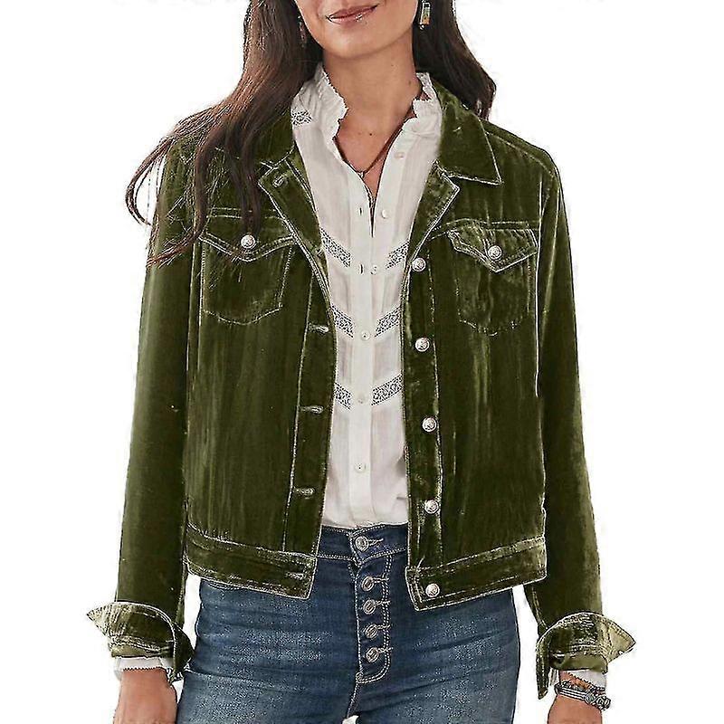 Luxora Women's Casucal Button Down Velvet Jackets Cropped Long Sleeve Retro Denim-style Velour Jackets