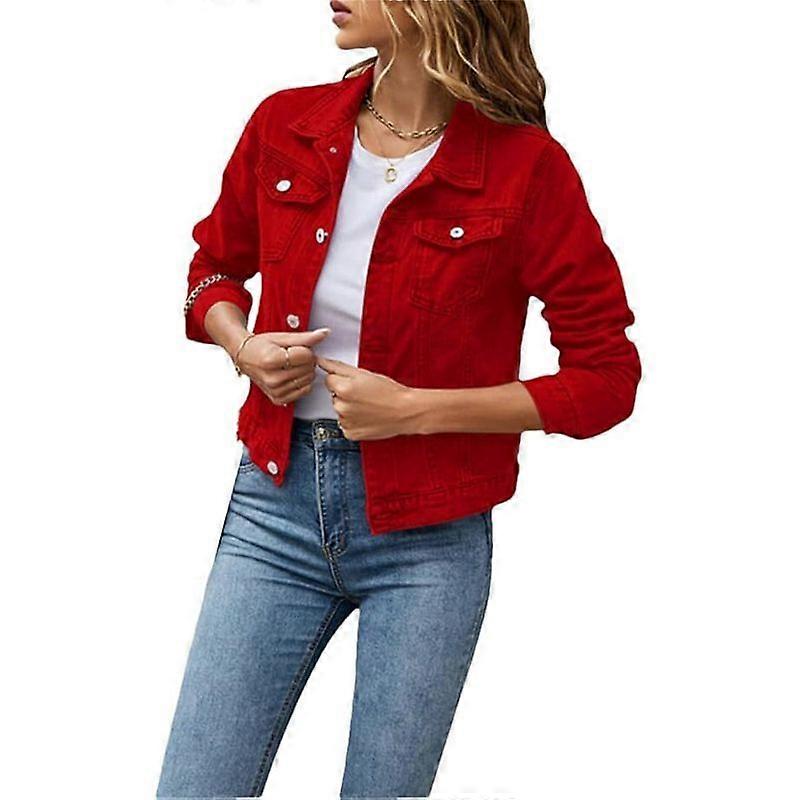 Luxora Women's Denim Jacket Casual Long Sleeve Lapel Solid Color Button Pockets Slim Fit Denim Jacket Spring Autumn Outerwear with Pockets