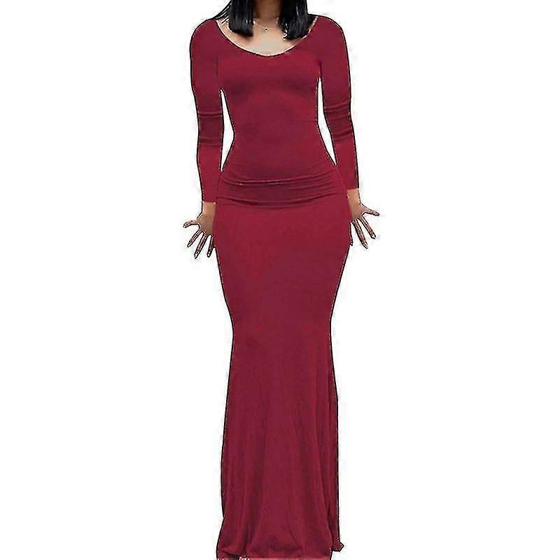 Luxora Women Sexy Black Skims Long Dress Solid Skinny Skinny Bodycon Trumpet Maxi Dress