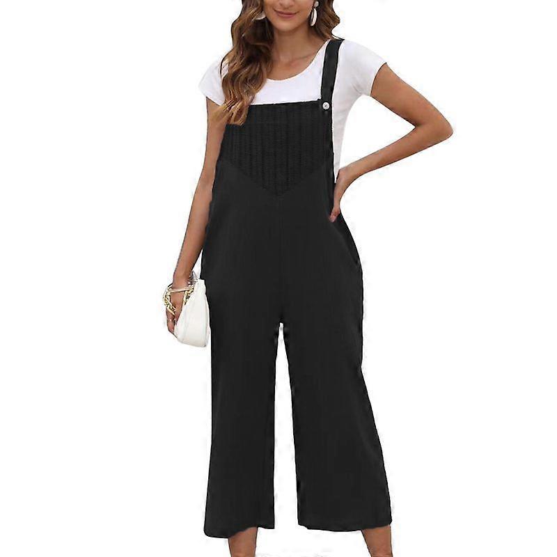 Luxora Women Casual Loose Wide Leg Overalls Sleeveless Casual Loose Overalls Jumpsuit with Side Pockets Black