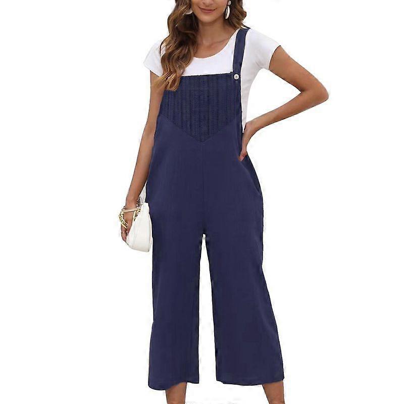 Luxora Women Casual Loose Wide Leg Overalls Sleeveless Casual Loose Overalls Jumpsuit with Side Pockets Dark Blue