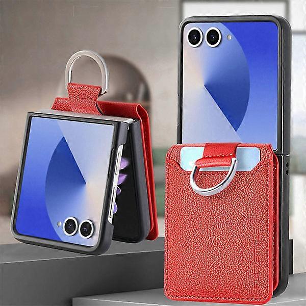 Compatible with Samsung ZFlip7/6/5/4/3 Wallet Case Card Slot Wrist Strap Holder Mobile Phone Case Red Z Flip 3