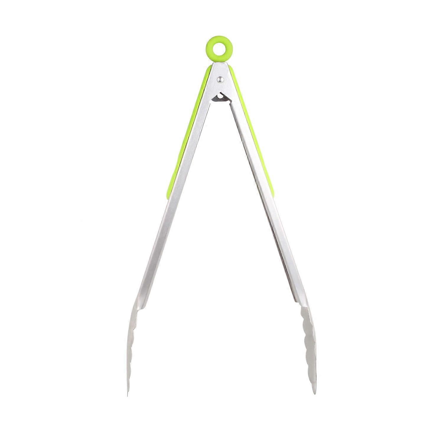 BLUKIDS 304 Stainless Steel Barbecue Clip, 13" Locking Grilling Tongs, Durable Kitchen Cooking Food Tongs, Green