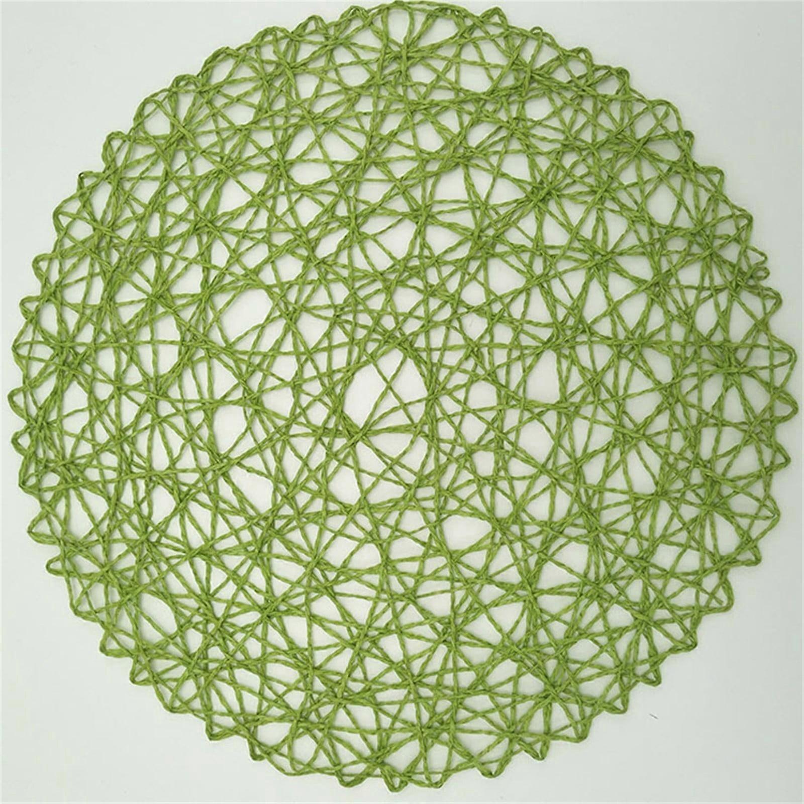 3Pcs Green Round Paper Cord Placemats, Braided Table Mat for Decoration & Insulation, Fine Craftsmanship