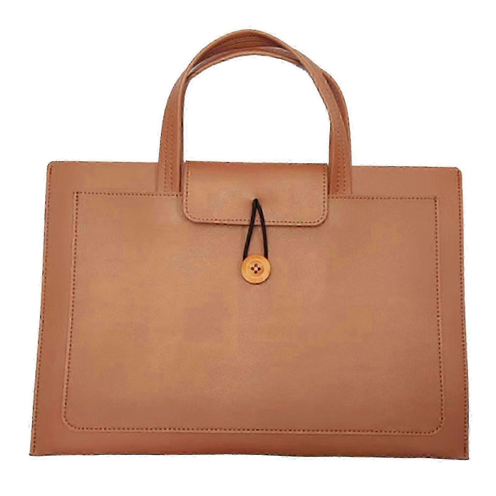 Thin Lightweight PU Leather Computer Bag Handheld Laptop Tote for Travel Business Earthy Yellow