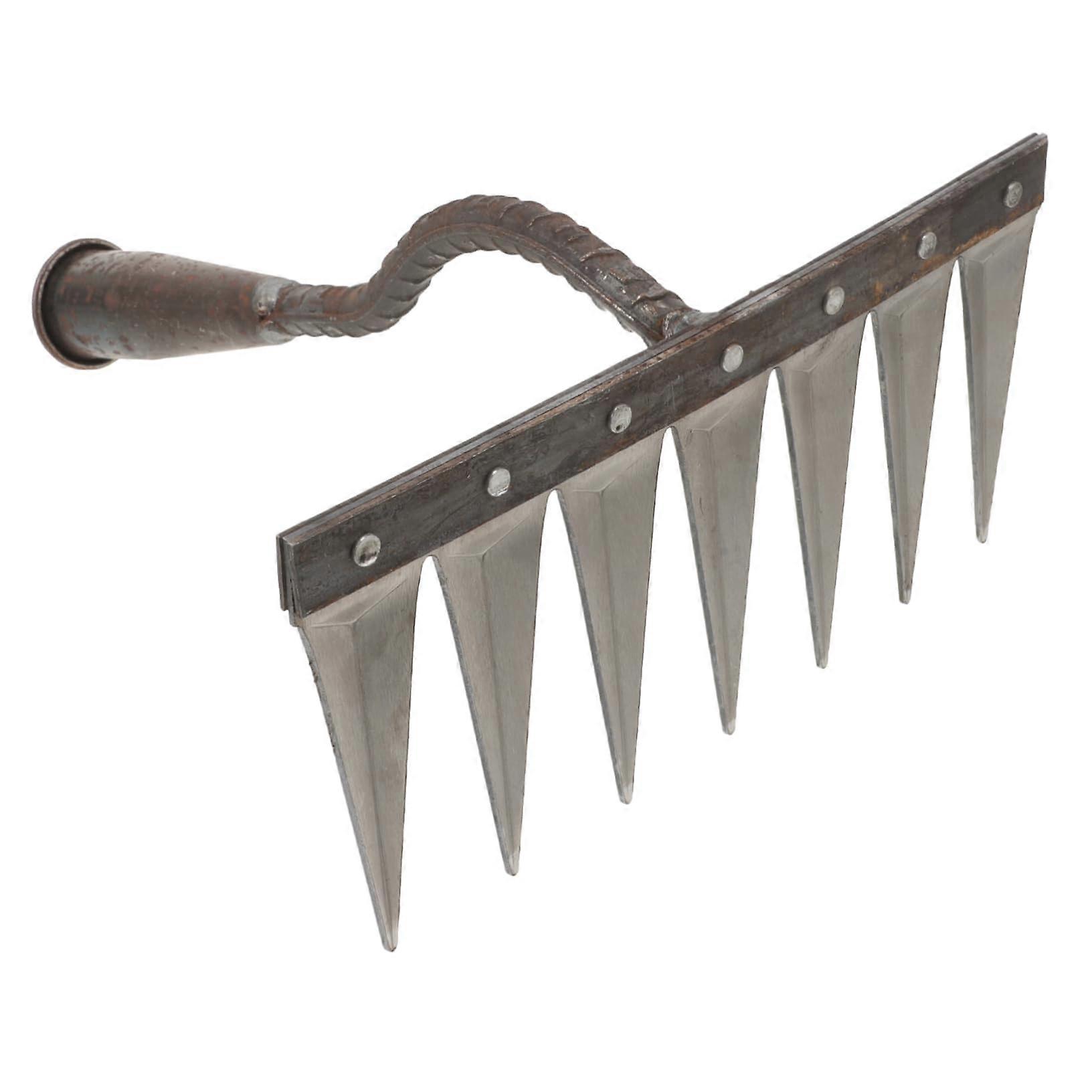 - Durable Steel Construction: This garden rake is crafted from high-quality steel, ensuring it remains strong and resistant to deformation, providing you with a reliable tool for years to come. - Effective Soil Loosening: Designed for deep soil penetration, this rake easily cuts and pulls out compacted soil, making it ideal for preparing your garden bed or landscape. - Compact and Portable: The garden hand rake is lightweight and easy to carry, making it perfect for home gardening or taking along on hiking trips. Its size allows for easy storage without sacrificing functionality. - Ergonomic Design: Featuring an ergonomic handle, this rake minimizes strain on your hands and wrists while efficiently removing unwanted branches and weeds, making yard maintenance more comfortable. Applications: - Perfect for gardening enthusiasts who need to break up tough soil for planting. - Great for maintaining trails or campsites during outdoor adventures, allowing for quick clean-up of debris. - Ideal for homeowners looking to keep their yards tidy by effortlessly raking up leaves and grass clippings. This garden rake combines durability, functionality, and comfort, making it an essential tool for any gardener or outdoor enthusiast.