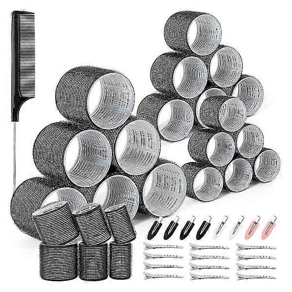 43-Piece Hair Rollers with Clips - 3 Sizes, Jumbo Hair Rollers with 12 Duck Clips