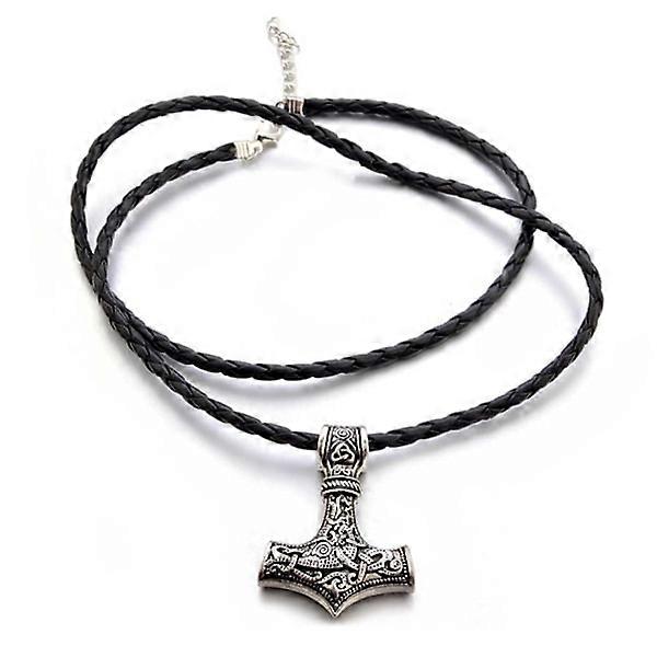 Viking Necklace Thor's Hammer Mjolnir Leatherette Silver silver