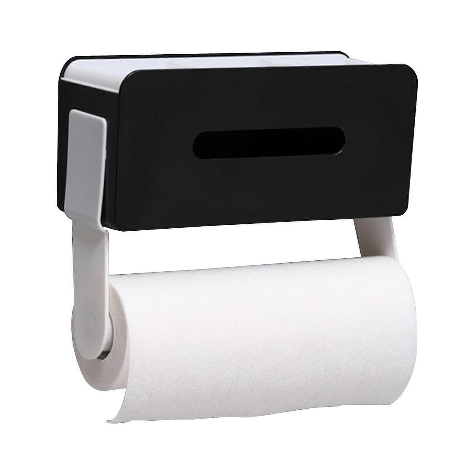 Magnetic Paper Towel Holder, 2-in-1 Magnetic Spice Rack with Hooks,Wall Mount Shelf Towel Rack for Refrigerator (Black)