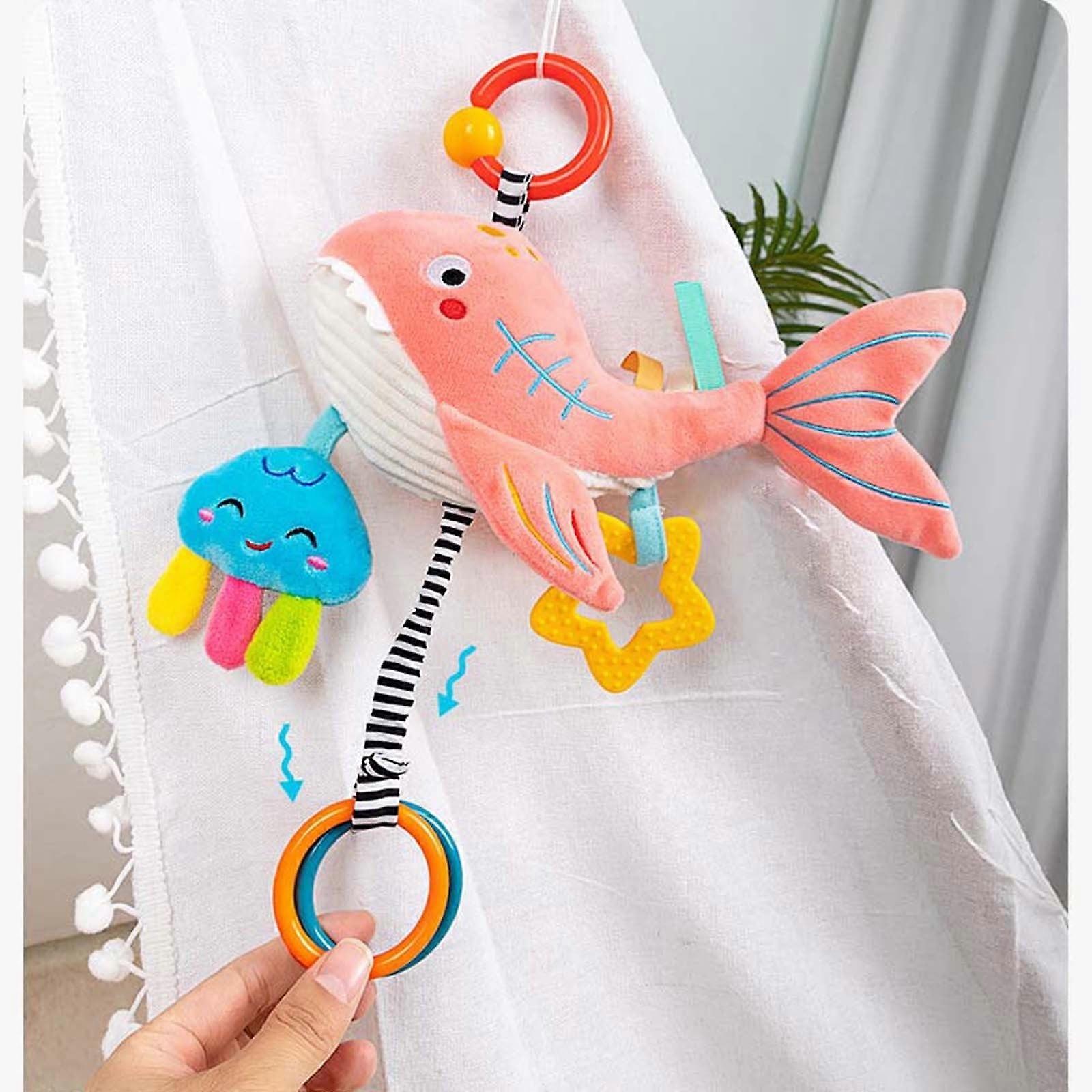 ZToonmas Hanging Rattle Toys for Babies Baby Toys 6 to 12 Months Comfort Toys Clip Hanging Plush Squeeze Toys (Shark)