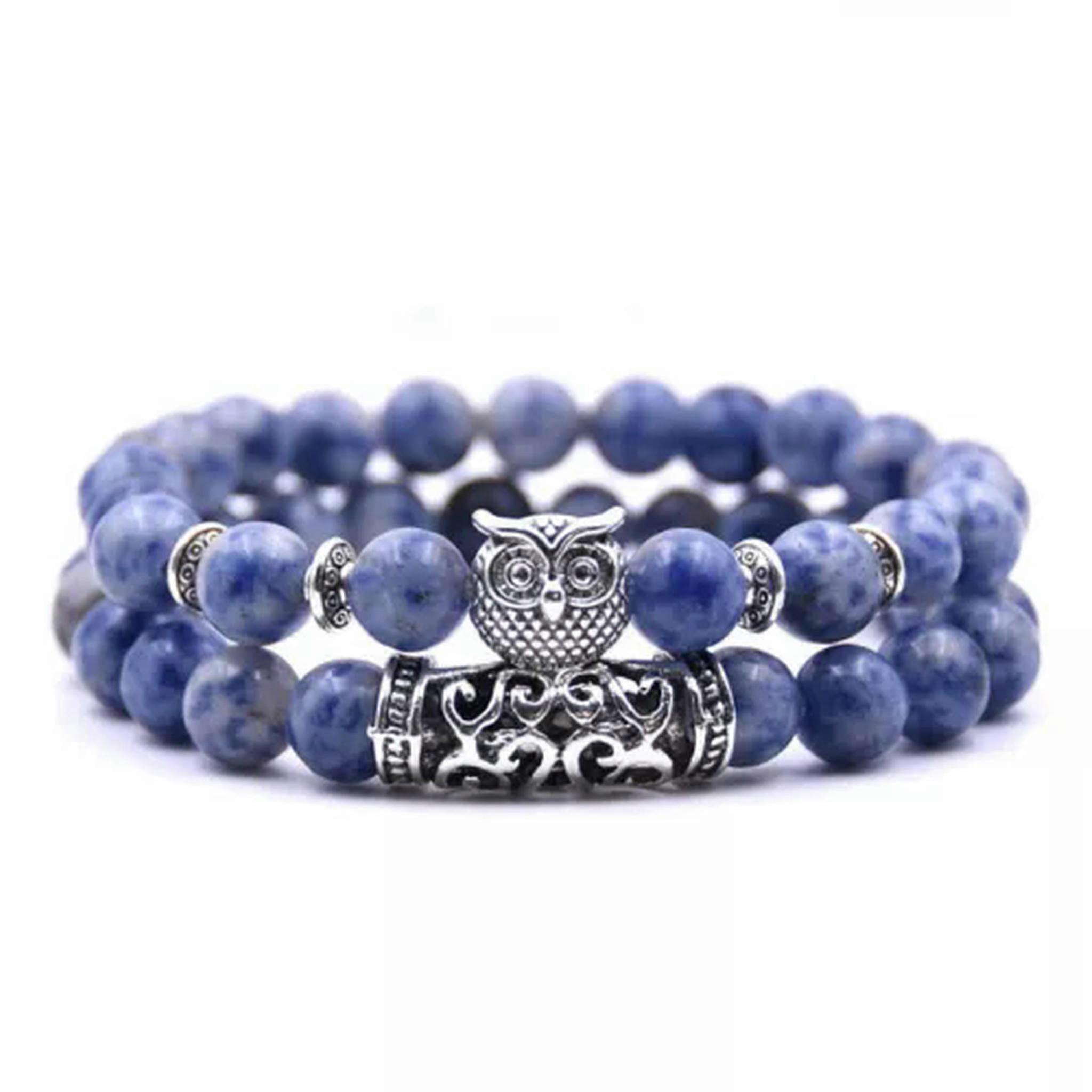 RSAMD Fashion Natural Stone Bead Buddha Lion Leopard Skull Charm Men 1 Pair Bracelets-001-35-Owl