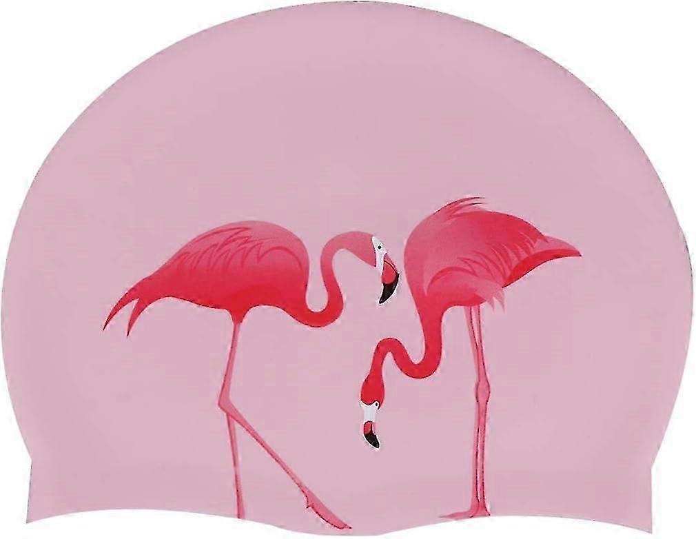 Silicone Swimming Cap Long Hair Ear Protection Swim Cap for Girls Women Female (Flamingo Pattern)