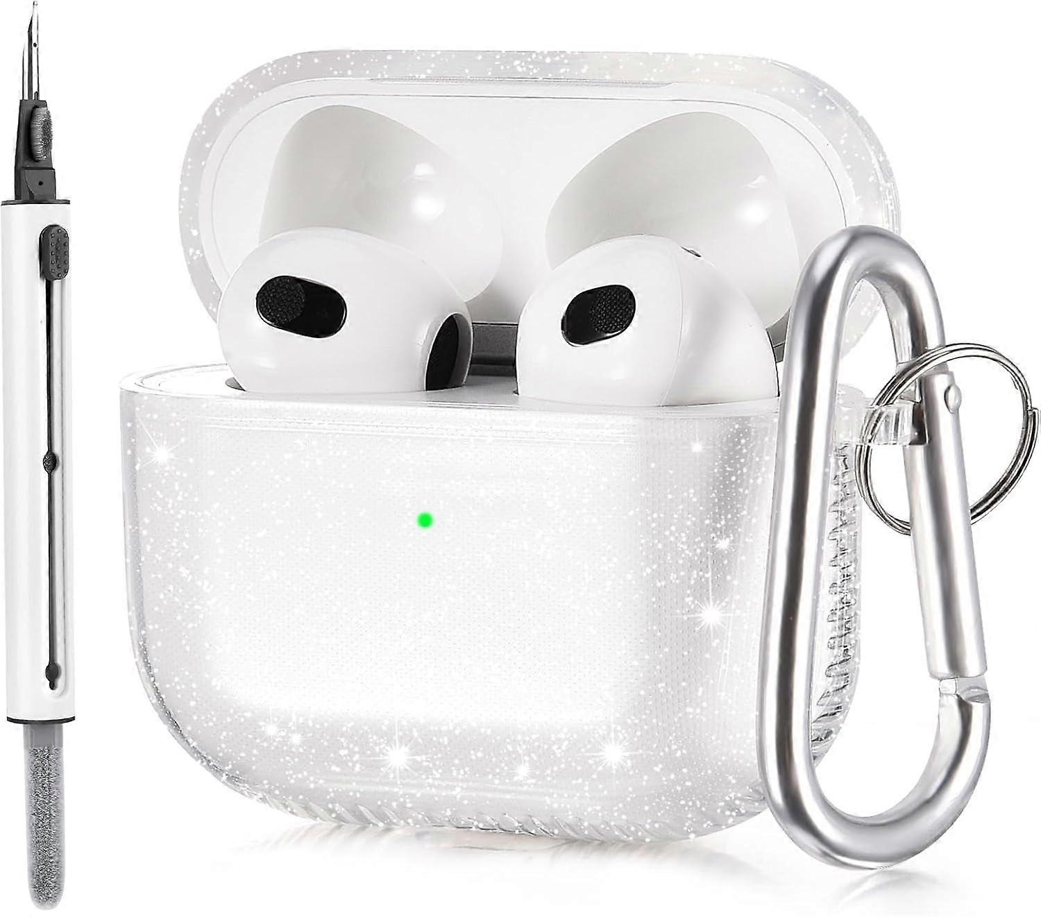 About this item Compatibility This high quality TPU cover compatible with Apple compatible with AirPods 3rd Generation (2021 Released). Supports both wired & wireless charging. NOT compatible with AirPods 1 & 2 or compatible with AirPods Pro. Crystal Clear & Lightweight The clear case is made of Eco-friendly anti-yellow high quality TPU, transparent appearance shows off the original beauty of your elegant Airpod 3. 360° FULL PROTECTIVE Leaves no fingerprints and dust on KOREDA compatible with Airpods 3 case. Micro-light technology on the surface makes the case 100% anti-shock, anti-slip, fingerprint and dust-proof. Dirts on the case surface can be cleaned and washed easily. A precise charging port cutout ensures convenient, unobstructed charging. Precise cutout offers a free access to the charging port. Fits snugly over the charging case. Full wrapped Design with Carabiner One-piece design can prevent the case cover from falling off. Added a metal carabiner clip, easy to carry and convenient to attach the compatible with Airpods 3 to handbag or backpack. 360 Days Warranty KOREDA offers you Free Replacement or Refund within 360 days for any conditions, lifetime timely customer service, any problems pls feel free to let us know. Compatible with AirPods 3 2021 3rd Generation Case Cover with Cleaner Kit, Soft Clear TPU Transparent Protective Case Designed with Keychain for AirPod 3 Charging Case (Glitter Clear) Electronics › Headphones, Earbuds & Accessories › Cases Electronics › Headphones, Earbuds & Accessories › Cases Electronics › Headphones, Earbuds & Accessories › Cases Electronics › Headphones, Earbuds & Accessories › Cases