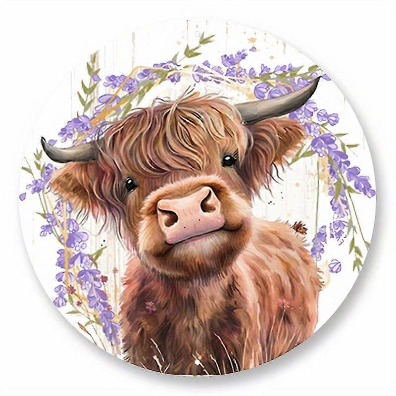 1pc 8x8inch Aluminum Metal Sign Lavender Highland Cow Wreath Sign, Wreath Sign, Home Decor, Metal Sign