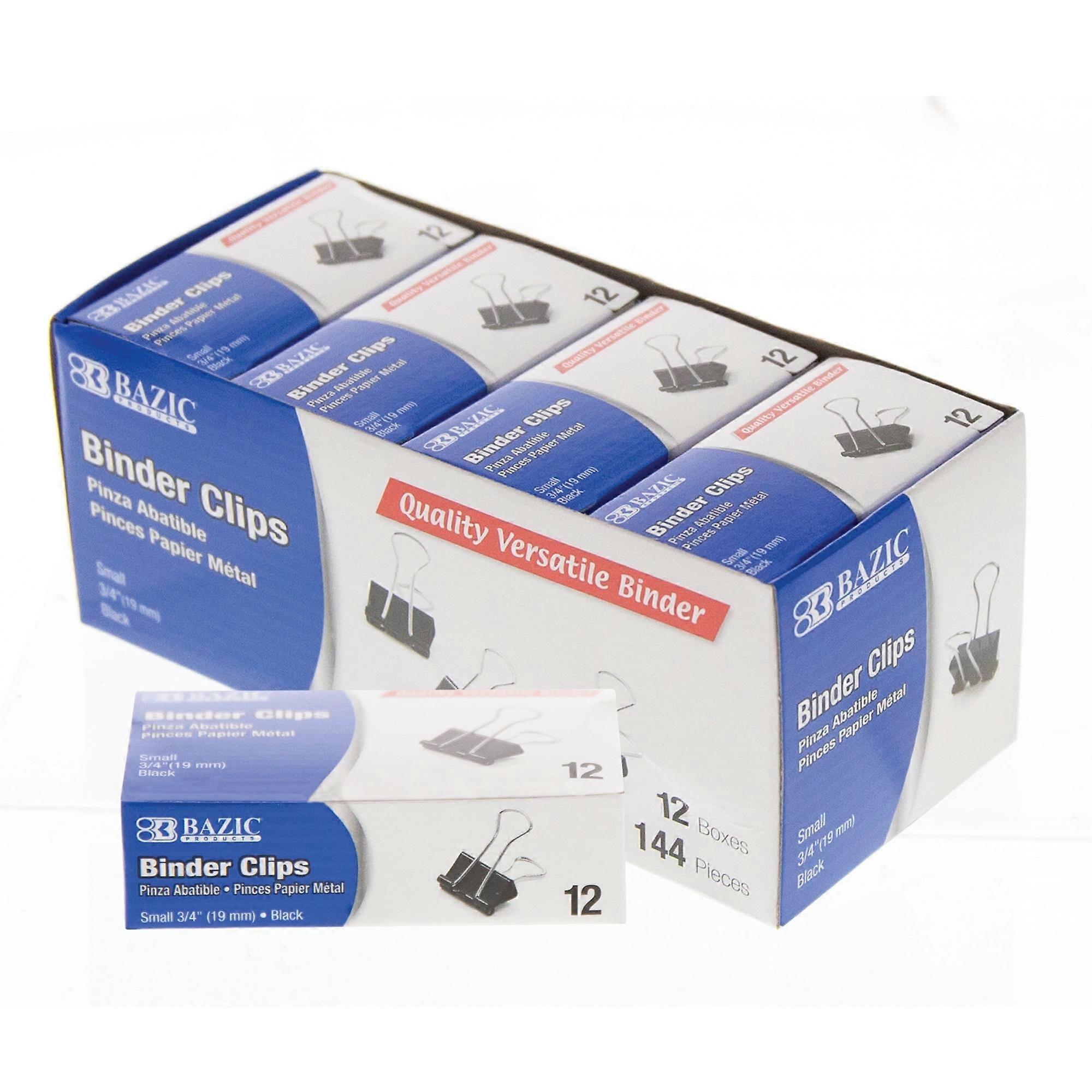 BAZIC Binder Clips Small Black 3/4" (19mm), Paper Clip (12/Pack), 12-Packs