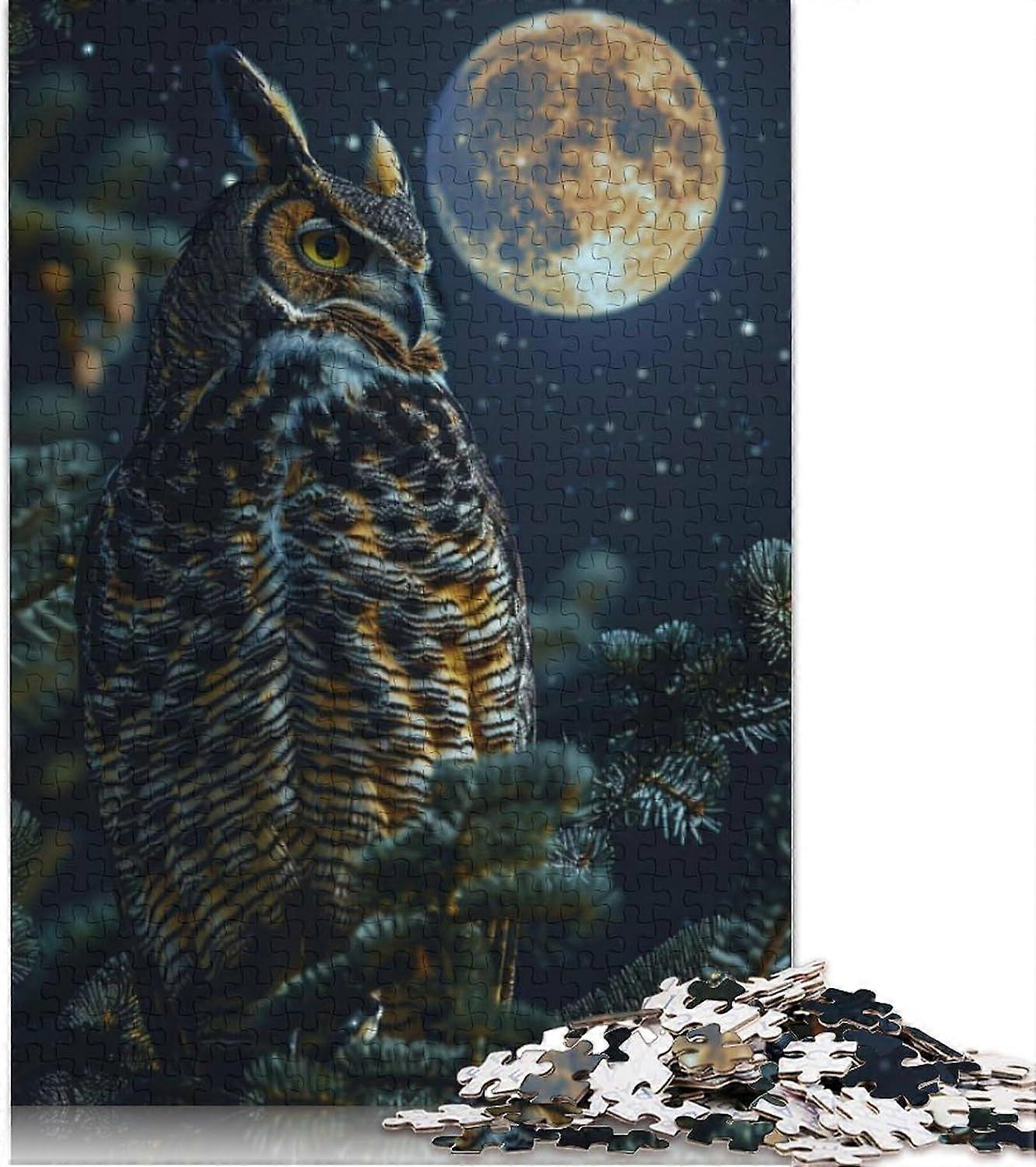 Great Horned Owl Under Moonlight Puzzle Educational Games Family Activities Jigsaw Puzzle for Women Men JJPP-1486