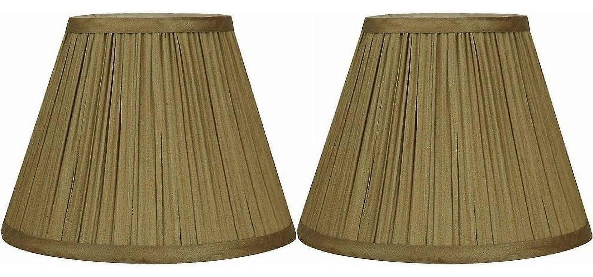 Urbanest mushroom pleated lamp shadesFaux silk softback shade with brushed nickel spider fitter. Shade is gold faux silk with tan lining.Top diameter measures 5" across, bottom diameter measures 9" across and 7" slant height.Maximum recommended wattage is 60 watts. Bulb not included.List price is for 2 shades.