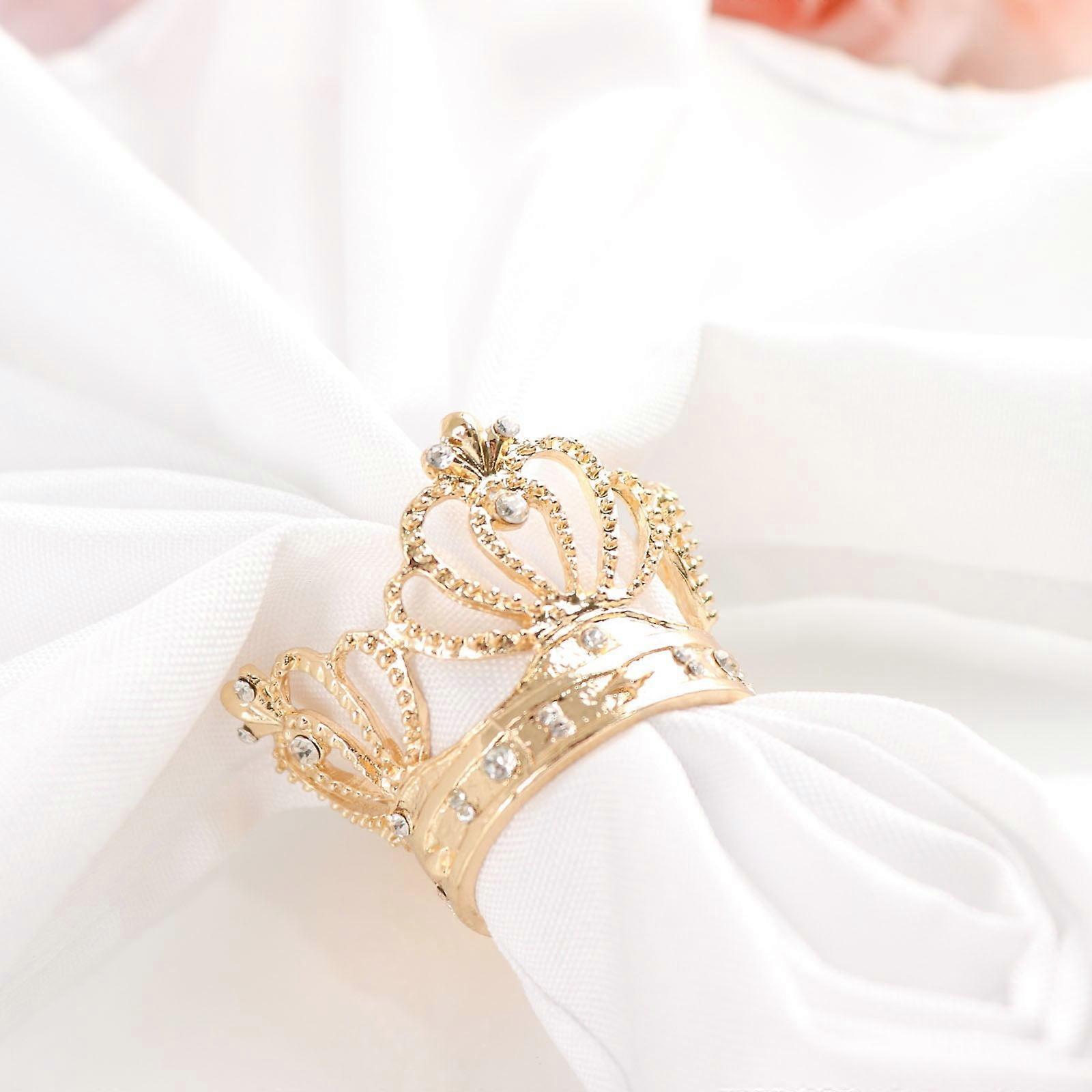 Efavormart 4 Pack | Metallic Gold Crown Rhinestone Napkin Rings, Royal Bling Napkin Holders
