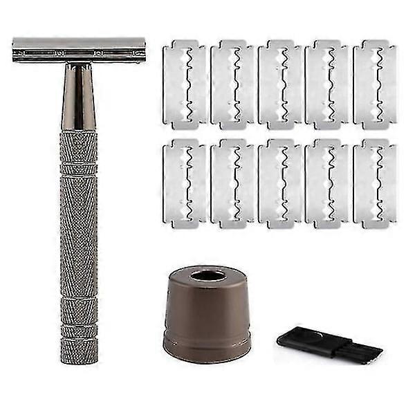 Rose Gold Razor Classic Double Edge Razor for Men and Women 10 Blades Black